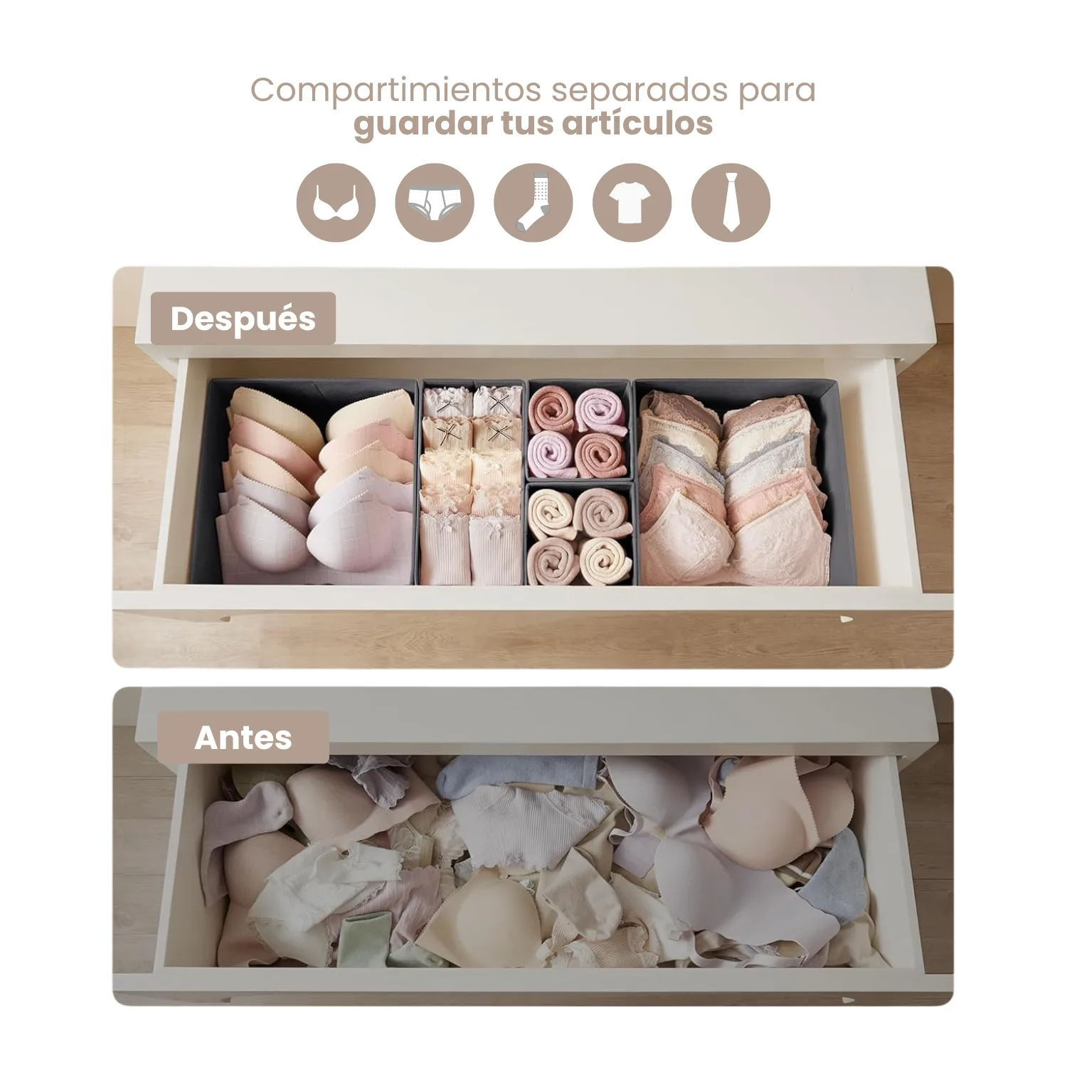 El Closet Max de cloq es tu solución para un closet siempre ordenado. Incluye 4 organizadores de distintos tamaños para que todo tenga su lugar. Facilita el mantenimiento del orden y optimiza el espacio. Encontrar tus cosas será más fácil que nunca. ¡que tu clóset te de siempre paz!