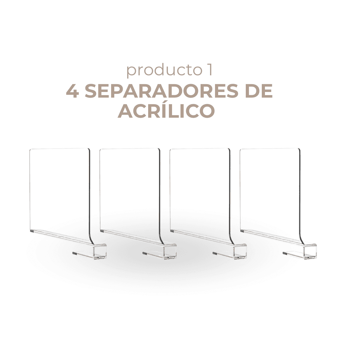 La combinación perfecta para la organización de tu clóset. Incluye: 1 separador de acrilico, 1 closet pro y 1 closet max