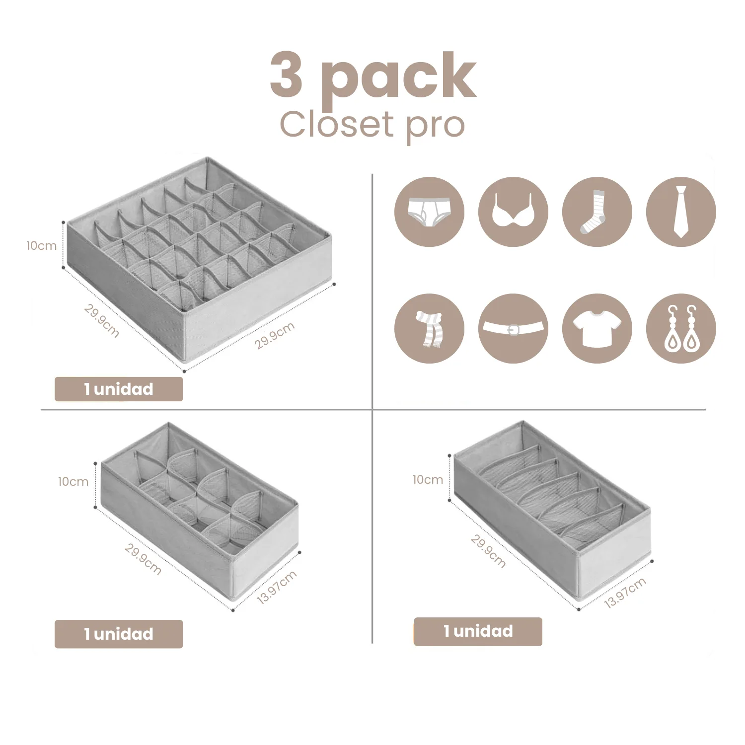 El closet pro de cloq es tu mejor amigo para un closet impecable. Incluye 3 piezas versátiles con separadores, puedes organizar ropa, trajes de baño, ropa interior y mucho más. Ideal para mantener todo en su lugar y a la mano. ¡Optimiza tu espacio y disfruta de un closet siempre en orden!